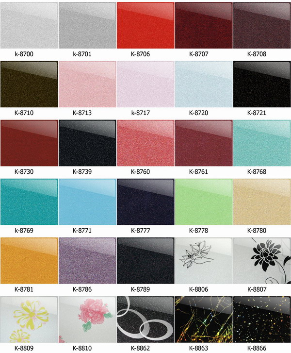 產品特點:PVC幻彩閃光膜是目前世界上領先的新型綠色環保產品。一般是底面上膠,也可以閃光面上膠,貼在玻璃上層或下層都可以。它具有優良的耐久性(耐候性、耐蝕性、耐化學性)和抗污能力,無毒無公害,防紫外線等多項優越性能,并且應用廣泛,充分迎合了人們向往綠色,崇尚環保,追求時尚的理念。 產品用途:廚具裝飾、可以貼在電器的表面作為一種時尚的裝飾品。 樣板展示: